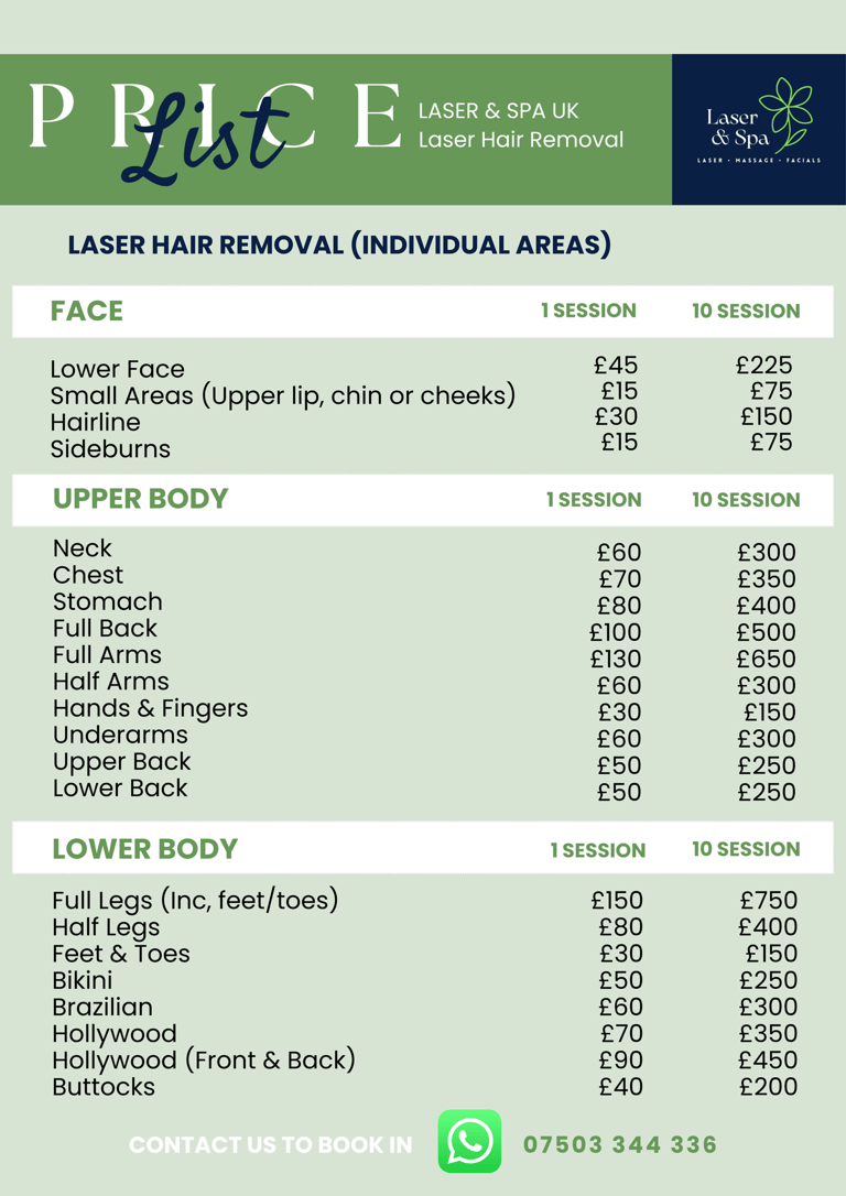 For any questions about our pricing or to find out which package suits you best, head over to our Contact Us page or simply WhatsApp us on 07503 344 336. Whether you are looking for a one-off treatment or a course of sessions, our pricing is designed to offer you the best value for your money at every visit.